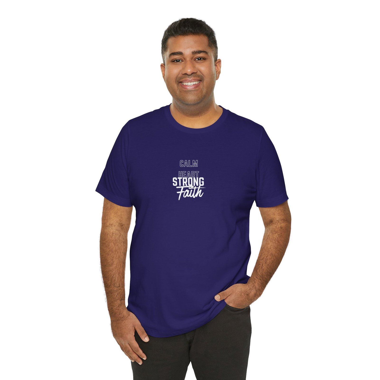 A soft, lightweight cotton tee that speaks quietly but confidently. The slim retail fit and crew neckline make it easy to layer under a jacket or wear solo. Center-front typography reads as a gentle declaration—subtle, not loud—so it slips into daily rhythms: a morning coffee run, a weekday service, or an evening meet-up with friends. The fabric breathes, moves with you, and holds its shape thanks to side seams and shoulder tape. It’s for the person who wants to wear their conviction without shouting. Dates, gatherings, and quieter celebrations feel natural while wearing this shirt—comfort that carries a message.